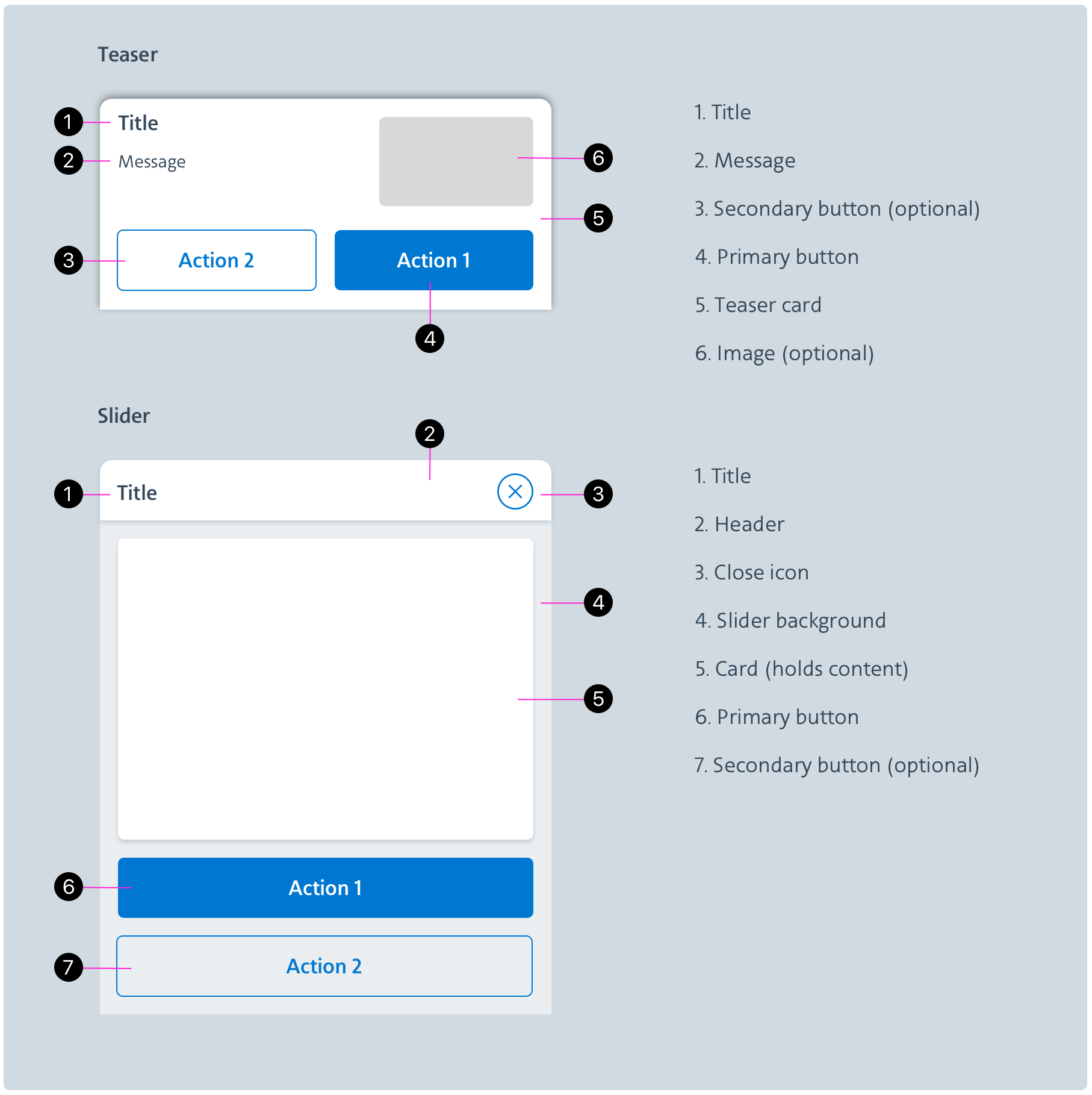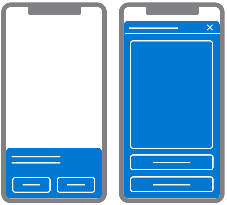 The size of a teaser is meant to be visible while keeping most of the page accessible. Its intent should be clear and concise and offer an option to opt in or out. A slider is the expanded form of a teaser or a standalone notification. It provides more content and invites users to engage in an activity.