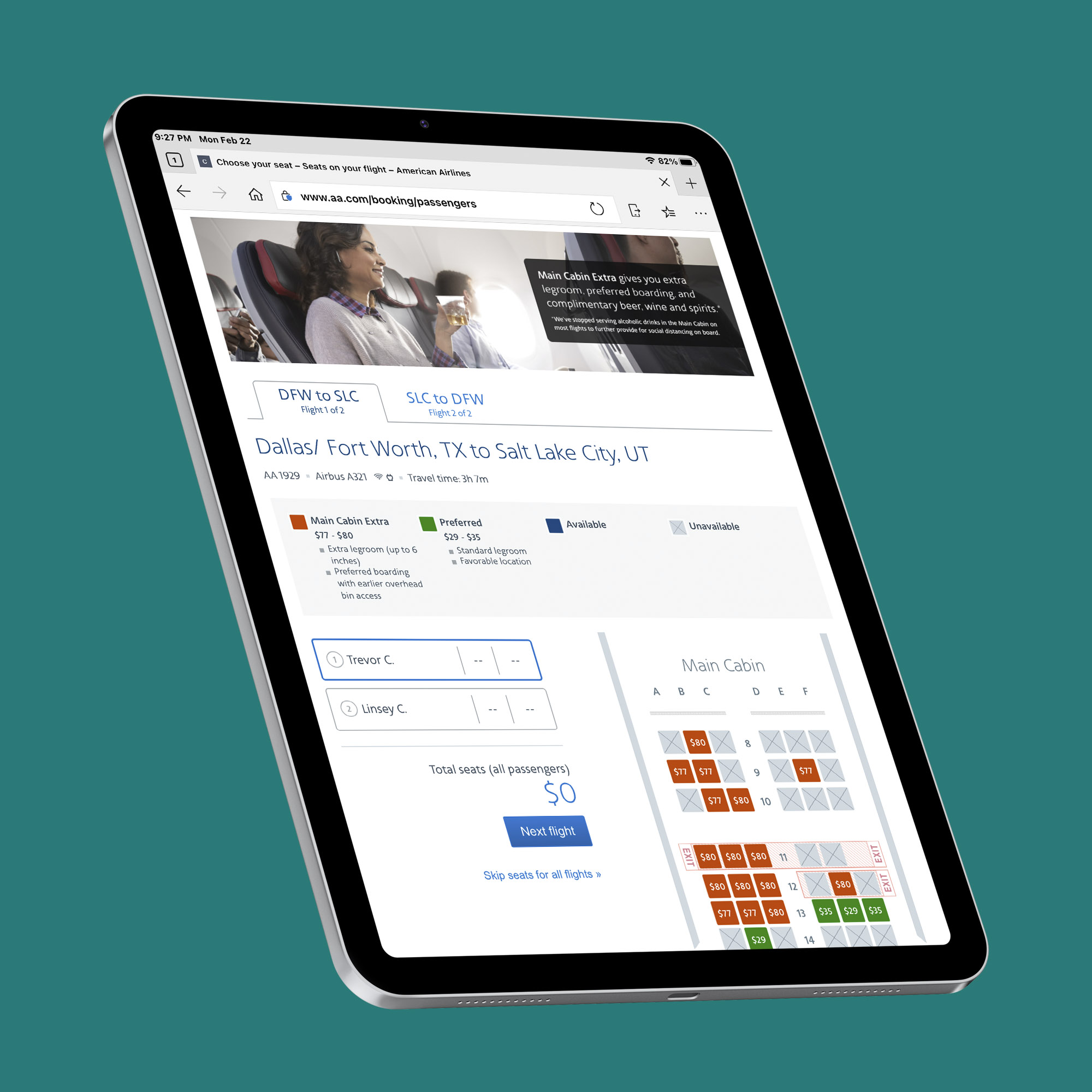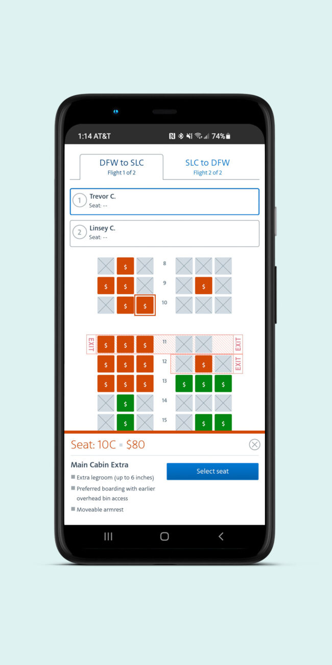 I completed a new seat map experience for American Airlineโ€™s customer booking flow, which is still in use today by millions of customers weekly. Over a period of three years I provided design support for the addition of new products to the seat map, as well as enhanced messaging.